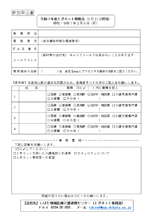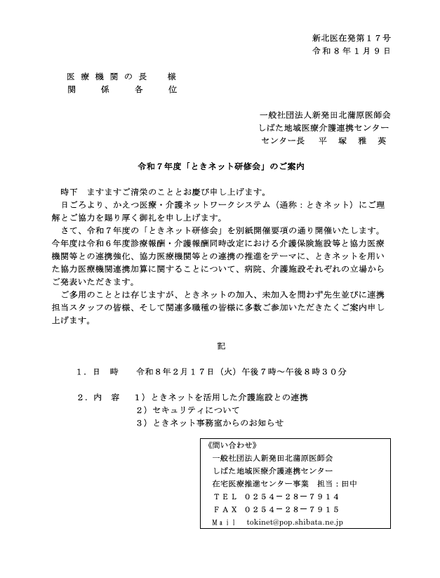 今年度は、令和6年度診療報酬・介護報酬同時改定における、介護保険施設等と協力医療機関との連携強化をテーマに、ときネットを活用した協力医療機関連携加算について、病院および介護施設それぞれの立場から発表を行います。